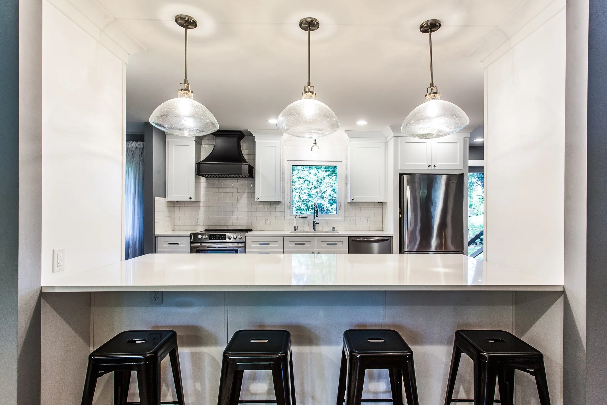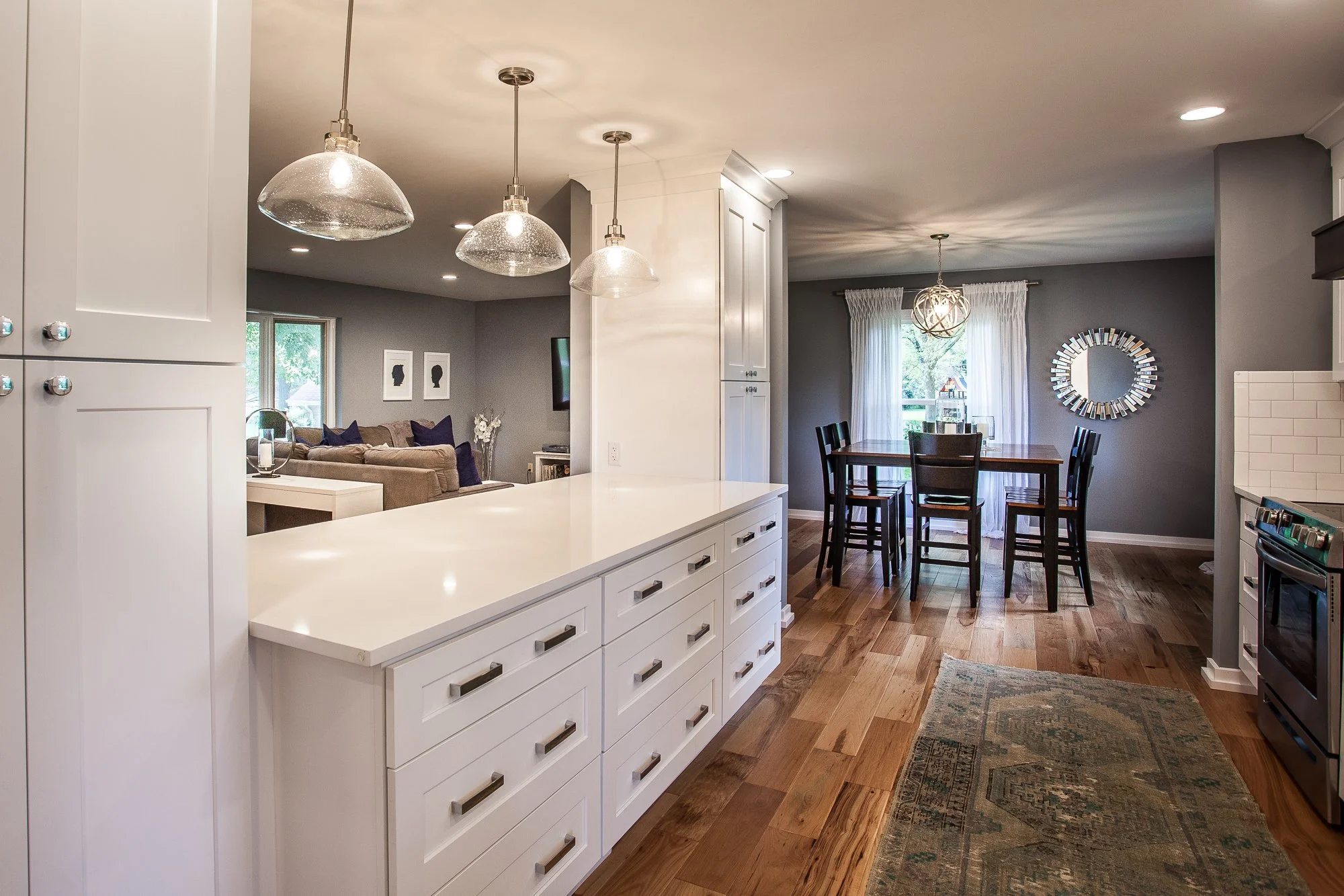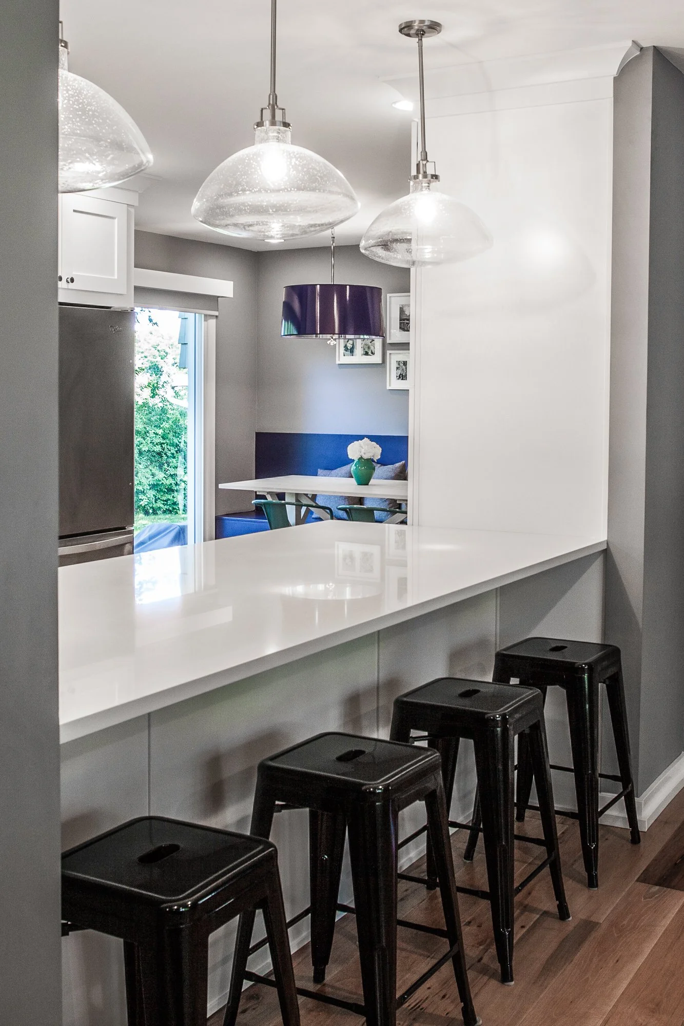 A complete kitchen redesign for a family that loves to entertain — turning a dark galley space with no storage into a cooks kitchen with ample pantries and a built-in breakfast nook.
